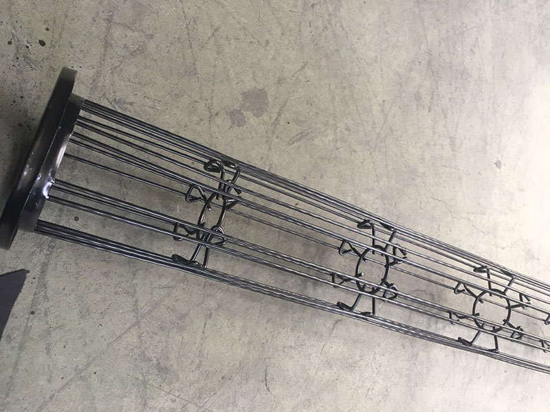 ?結構特點?:褶皺袋籠采用圓型結構,縱筋和反撐環分布均勻,具有足夠的強度和剛度,防止損壞和變形。頂部加裝冷沖壓短管,保證袋籠的垂直并保護濾袋口在噴吹時的安全?。